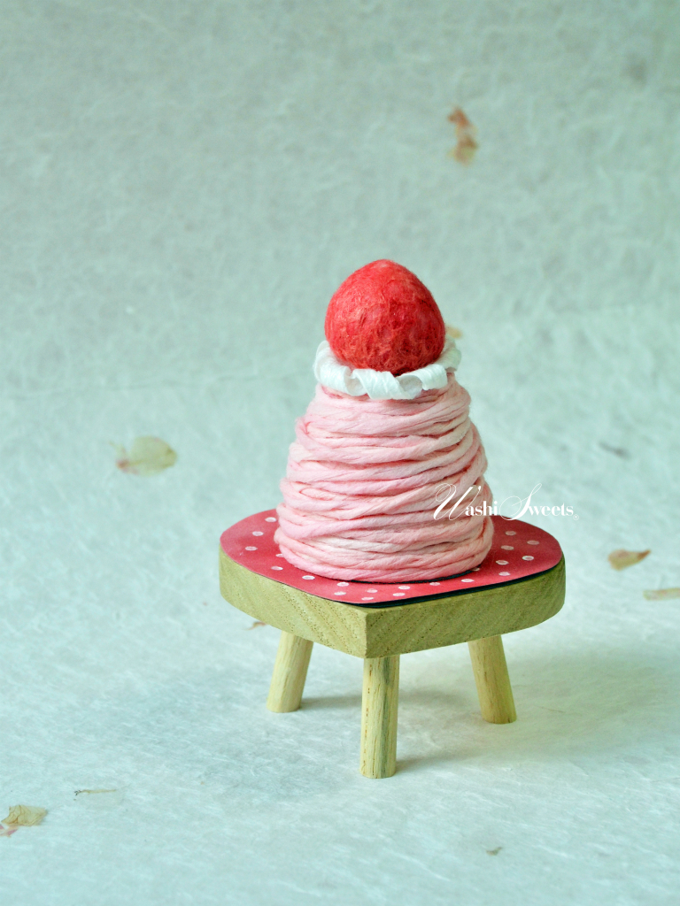 薄い和紙を使って、苺のモンブランを作ります。